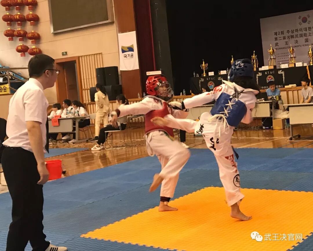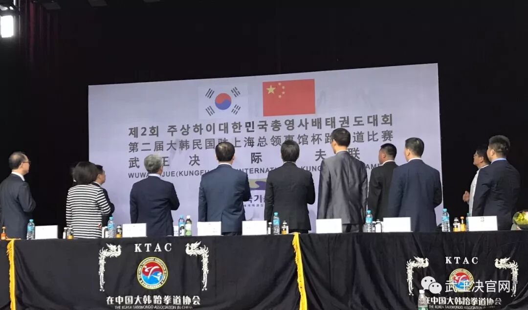 武王决国际功夫联赛竞赛委员会秘书长韩长良博士与在中国大韩跆拳道协会华东支会会长金一焕共同了主持比赛开幕式,出席开幕式的领导韩国国技院院长吴贤得、韩国驻上海总领事馆总领事朴善源、上海跆拳道协会主席王兴才、上海体院跆拳道队总教练李玉清等十几位中韩两国代表,上海跆拳道协会主席王兴才致欢迎词:“跆拳道是韩国的,也是中国的,更是世界的,希望通过跆拳道交流让中韩友谊更长更久更远!”韩国国技院长吴贤德和韩国驻上海总领事馆总领事朴善源分别致辞,勉励在场的所有运动员继续努力奋发图强!
